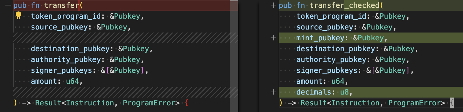 - `transfer_checked` 比 `transfer`多了2个参数:`mint_pubkey` 和 `decimals`