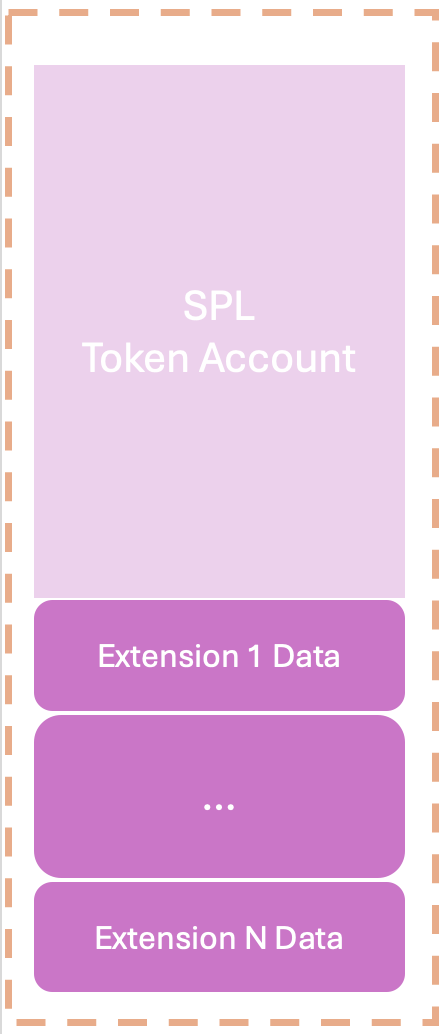 作为Token的strict superset,Token2022 中保持了Token Account的structure layout,并将额外的Extension Data数组拼接在 Token Account 后,大致的结构示意图如下: