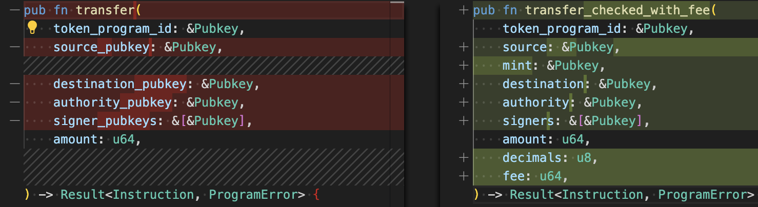 因此,推荐在 Token2022 中,不要再使用transfer,而是使用 transfer_checked 和 transfer_checked_with_fee 。